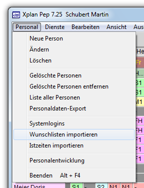 Anschließend werden die Wünsche vom Dienstplaner per Mausklick